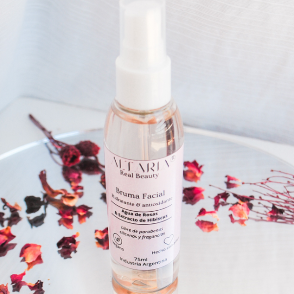 Ésta bruma combina hidrolato de rosas, que tonifica e hidrata, y extracto de hibiscus, rico en antioxidantes, para revitalizar y mejorar la firmeza de la piel. También contiene glicerina, que aporta hidratación duradera, dejando el rostro suave y fresco por más tiempo.