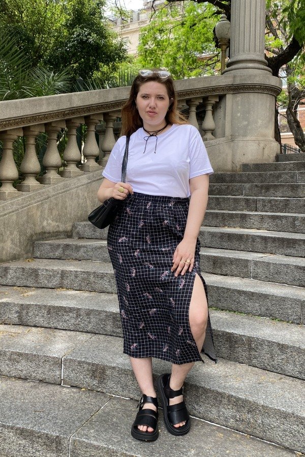 En las fotos Julia tiene 84cm de cintura y 114cm de contorno de cadera y usa talle 3!