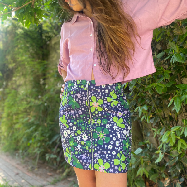 Pollera corta con cierre delantero.