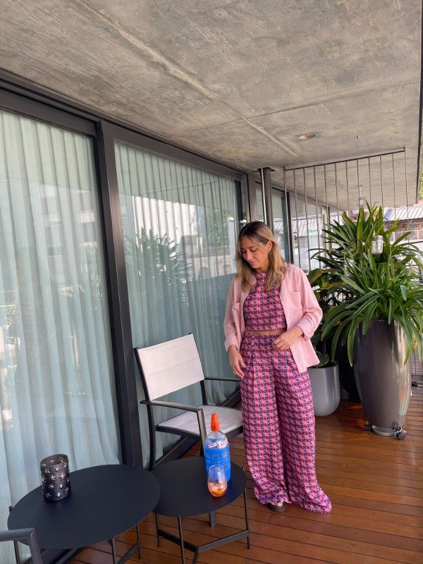 Este pantalón tipo Palazzo no lo vas a poder dejar de usar. Tiene tablas encontradas delante que le dan a la prenda un toque sastrero pero sin perder amplitud y comodidad, elástico de cintura sólo por detrás (evitando que apriete en la zona de la panza), y bolsillos laterales..