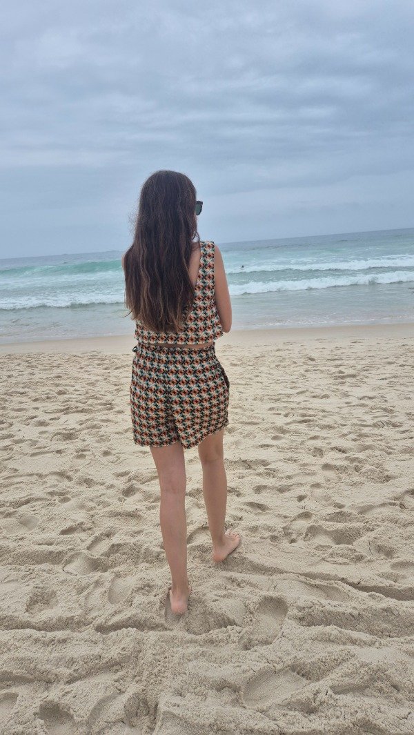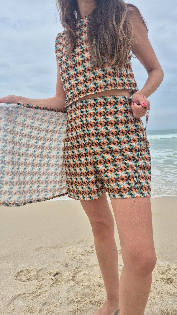 Adelante pollera, atrás short. Todo lo que necesitás para estar bien y cómoda. Confeccionada en tela fresca y de hermoso estampado.