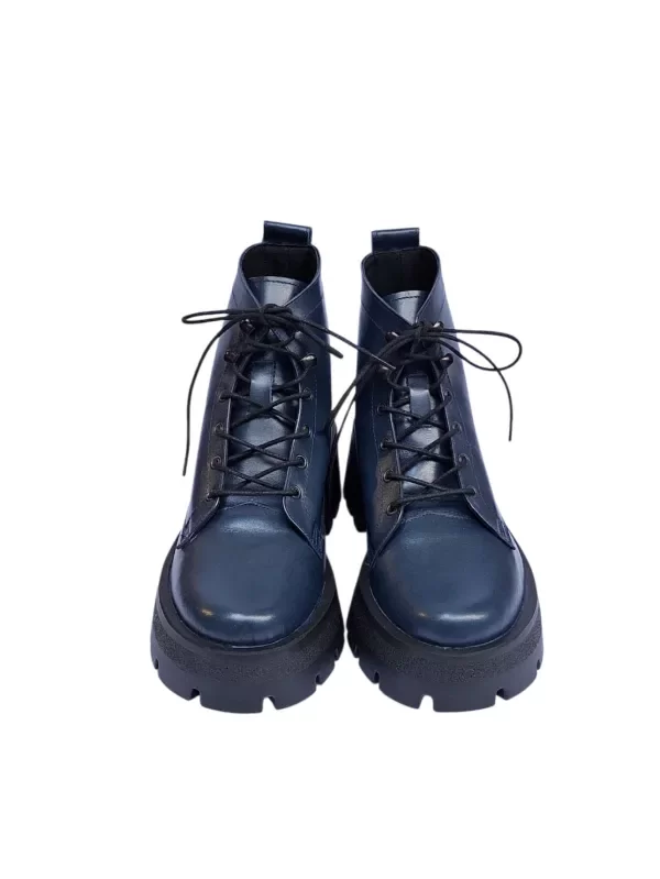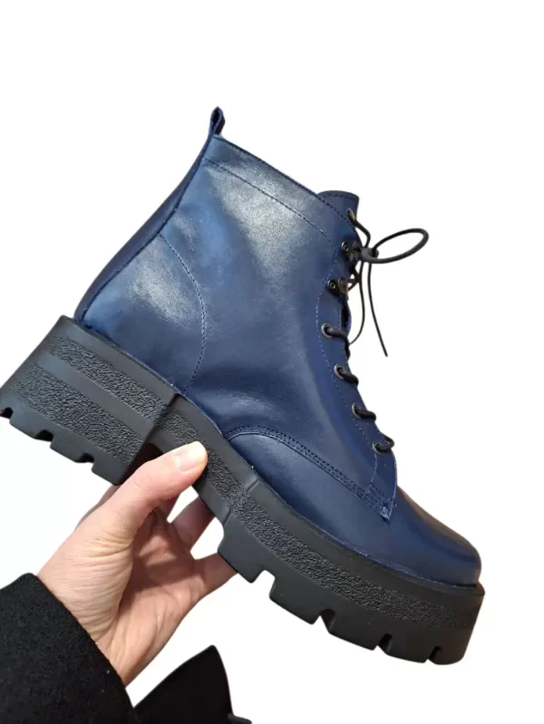 Borcegos realizados en cuero argentino, altura de caña media, ojales metálicos y broches alpinos para poder calzarlos y descalzarlos con mayor rapidez y comodidad.
